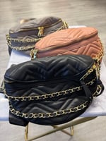Supercute bag that can be turned into a handbag/ chest bag and fannypack. *Size small and medium the fannypack option you will have to change the strap for that option. I've noticed it's too long for smalls and medium size. The strap and the chain can be taken on and off if you like. PLUS SIZE APPROVED!