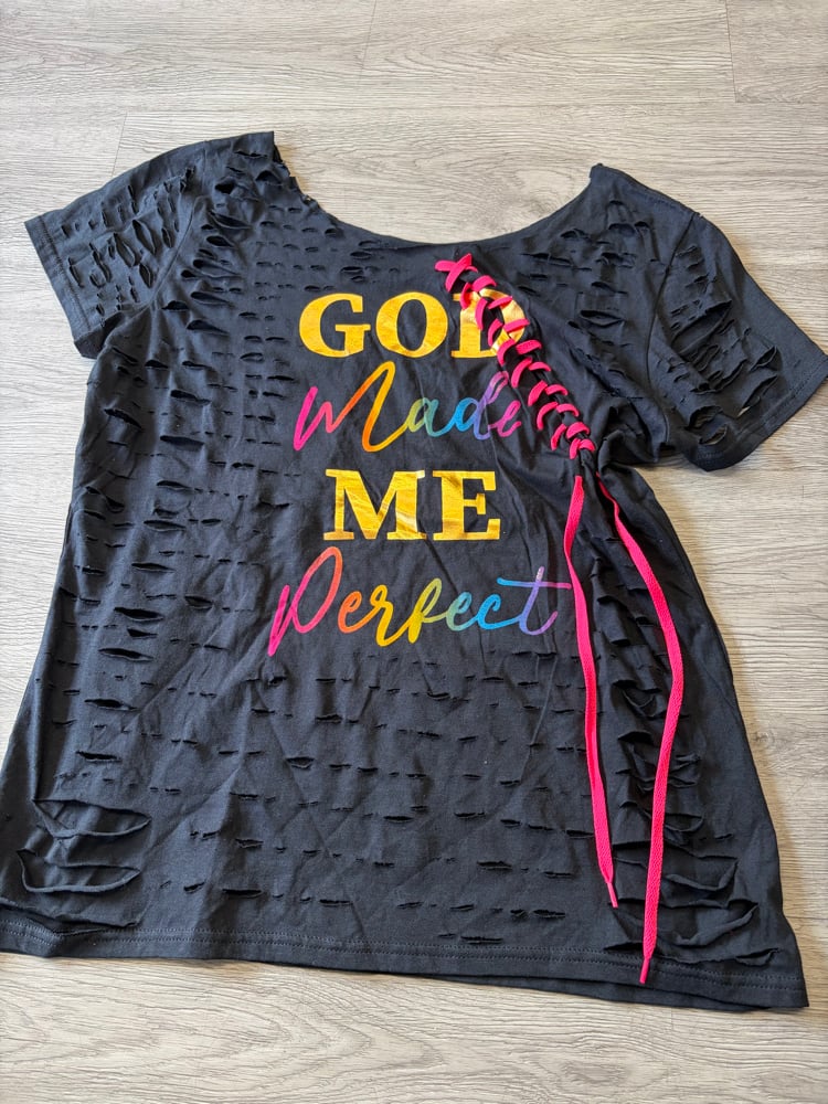 Large off shoulder God got me lace destroyed