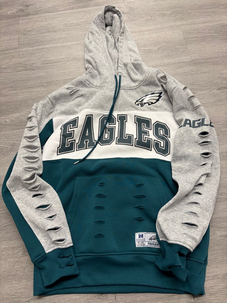 Medium green/white Eagle destroyed hoodie