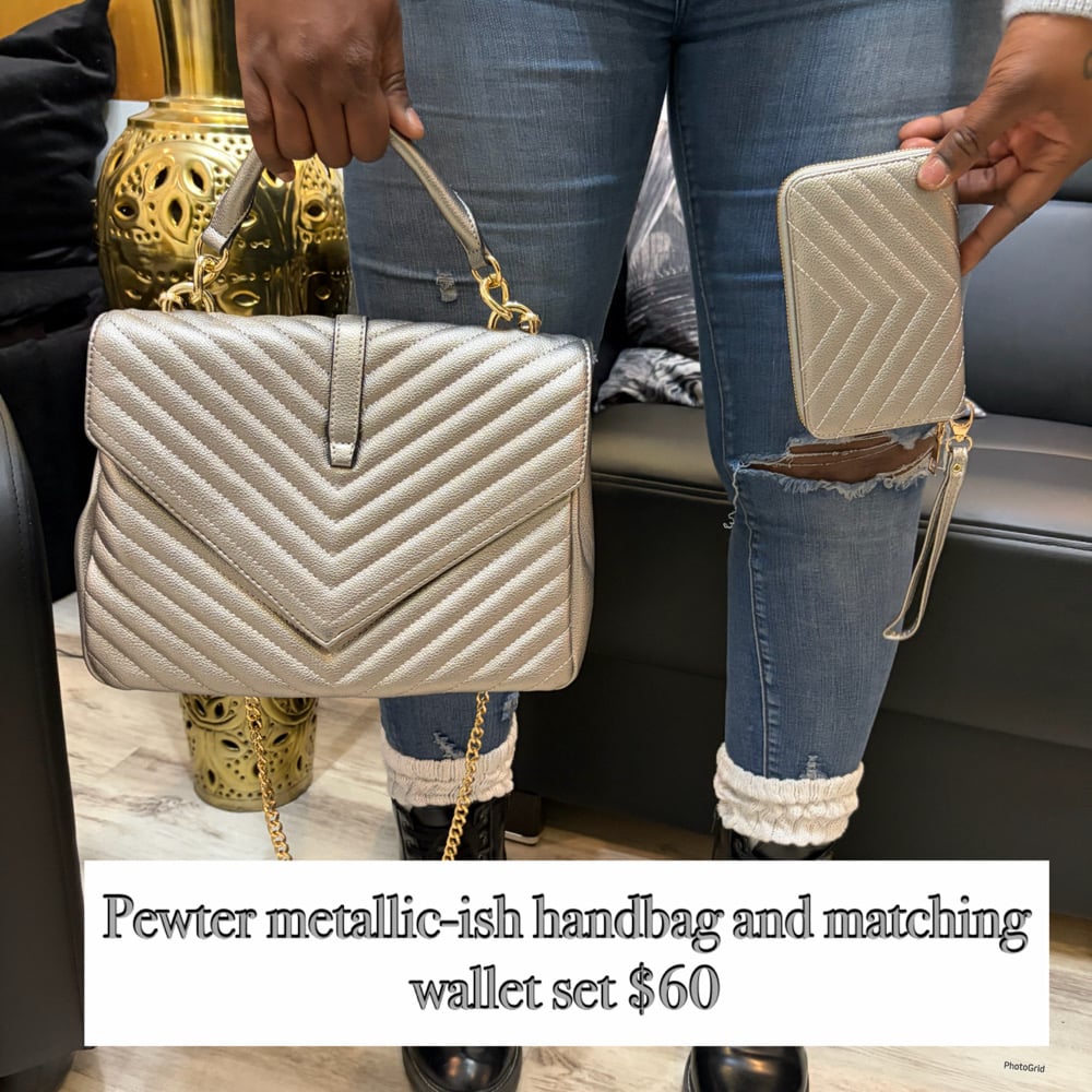Pewter metallic-ish handbag with matching wallet set