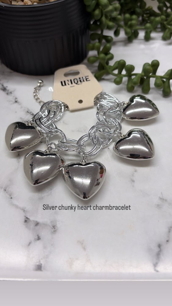Silver chunky heart charmbracelet