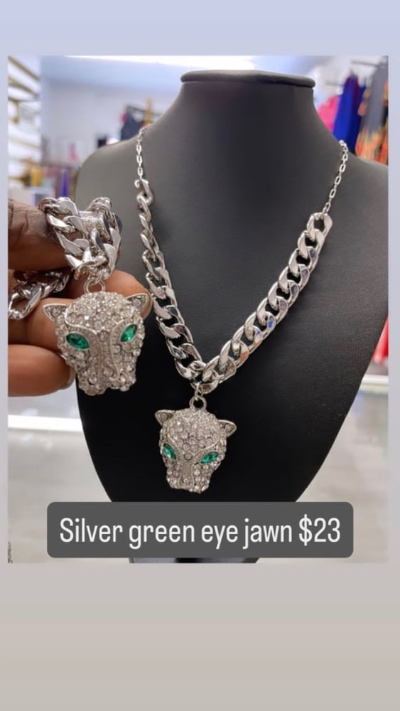 Silver green eye jawn necklace