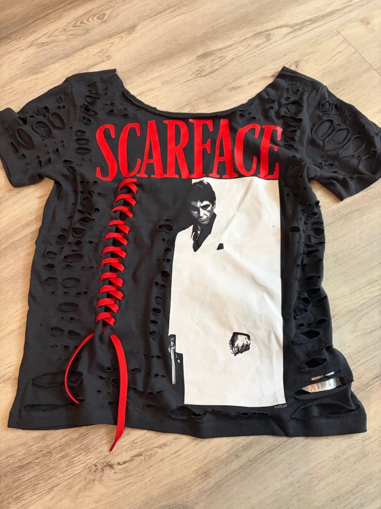 Small scarf face off shoulder lace destroyed