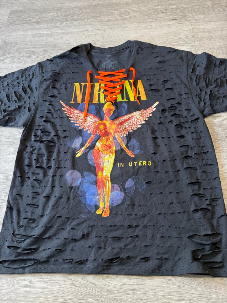 Xlarge Nirvana Orange top lace destroyed
