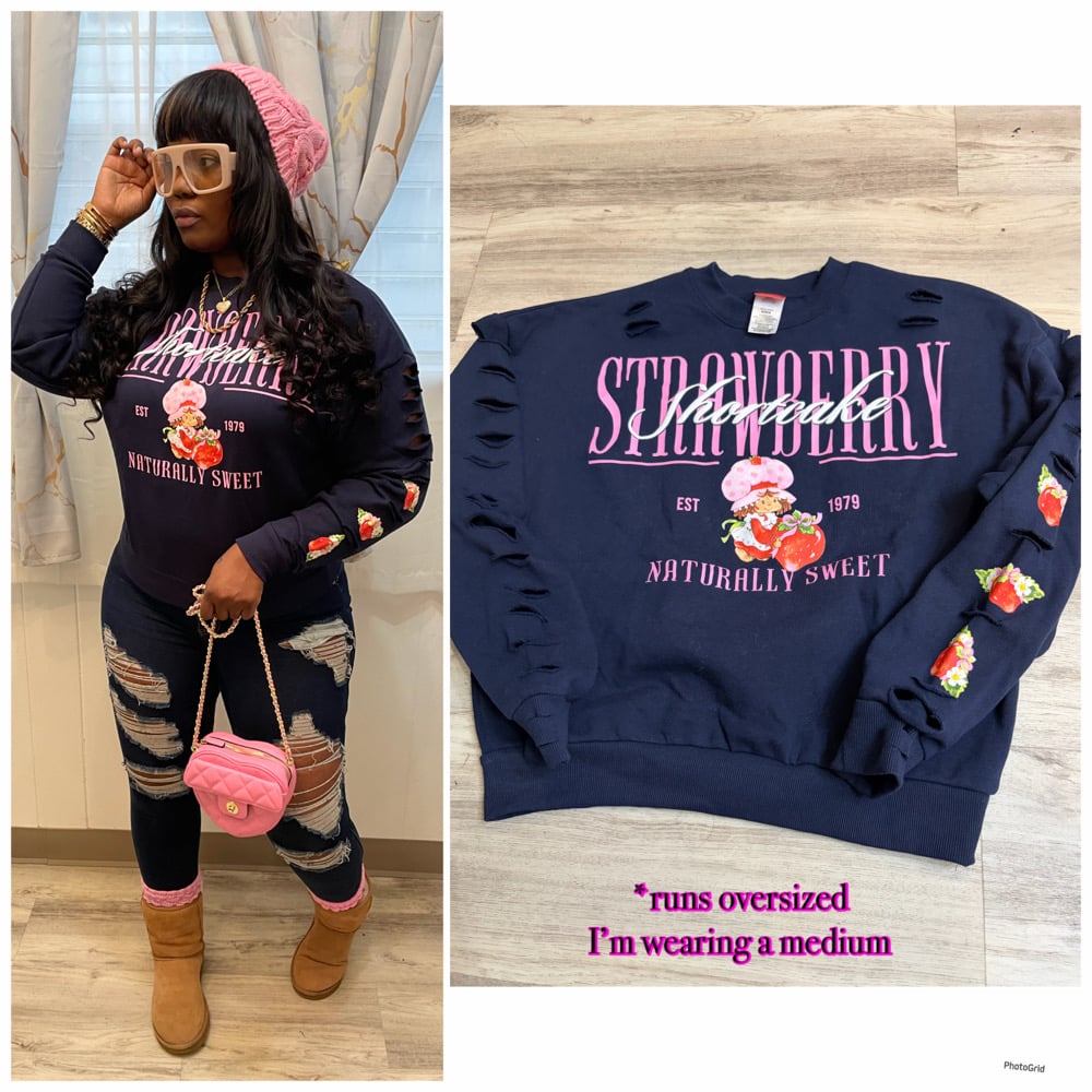 Xsmall - Xlarge Strawberry shortcake blue destroyed sweatshirt *runs oversized